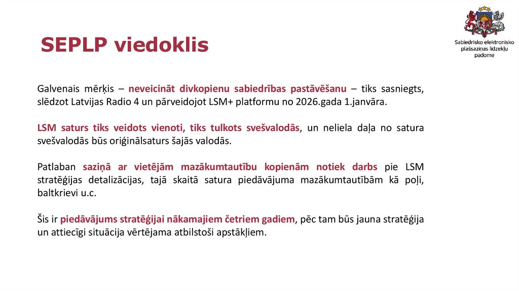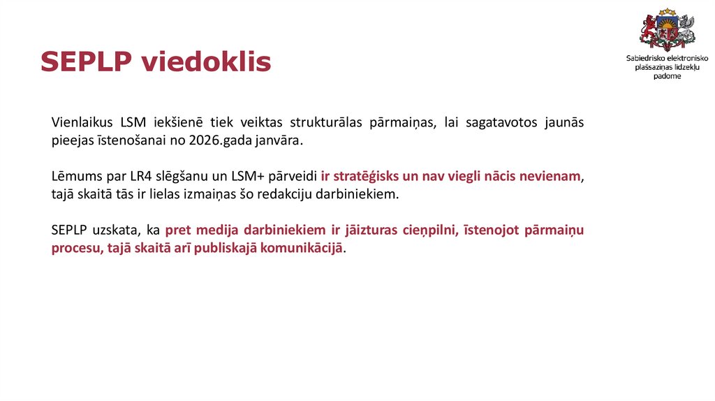 SEPLP viedoklisVienlaikus LSM iekšienē tiek veiktas strukturālas pārmaiņas, lai sagatavotos jaunās
