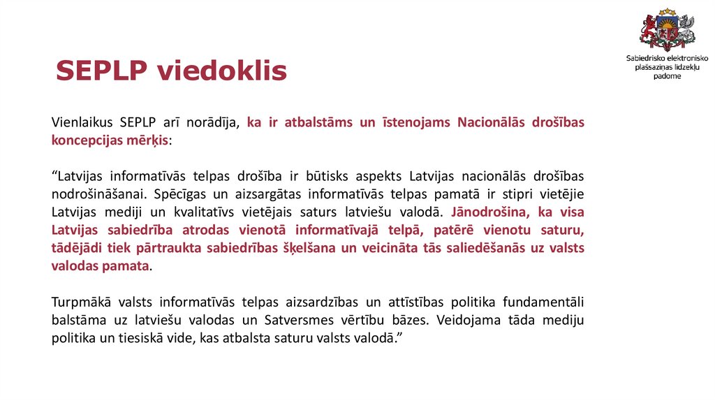 SEPLP viedoklisVienlaikus SEPLP arī norādīja, ka ir atbalstāms un īstenojams Nacionālās drošības