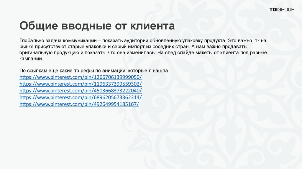 Общие вводные от клиентаГлобально задача коммуникации – показать аудитории обновленную упаковку продукта. Это важно, тк на