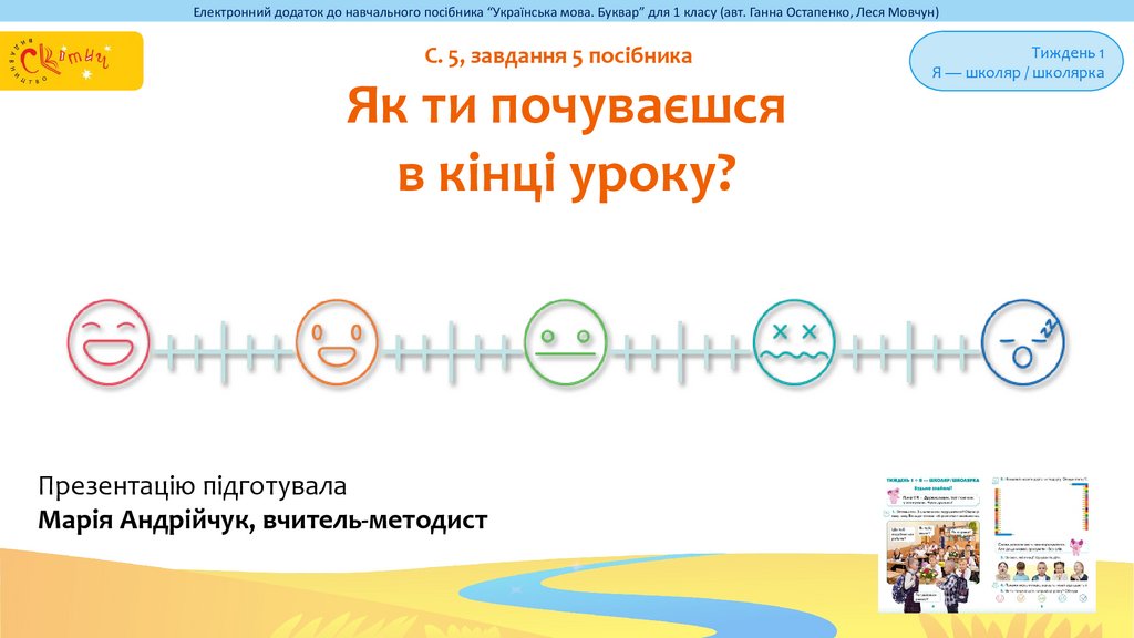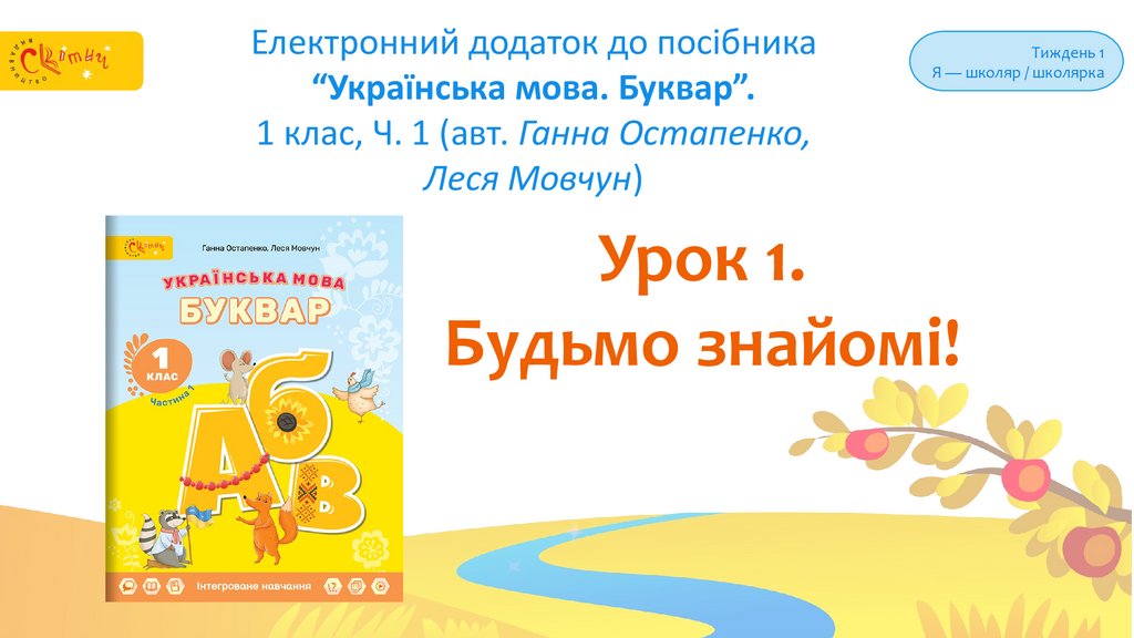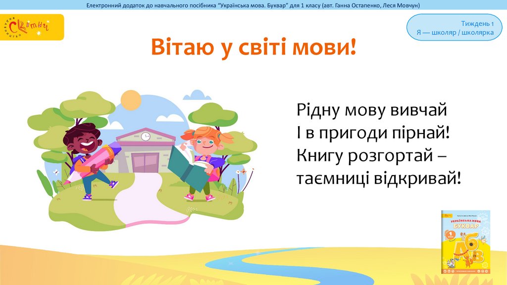 Електронний додаток до навчального посібника “Українська мова. Буквар” для 1 класу (авт. Ганна Остапенко, Леся Мовчун)Вітаю у світі мови!