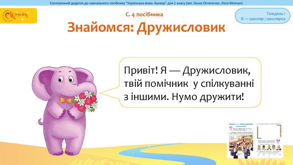 Електронний додаток до навчального посібника “Українська мова. Буквар” для 1 класу (авт. Ганна Остапенко, Леся Мовчун)С. 4 посібника