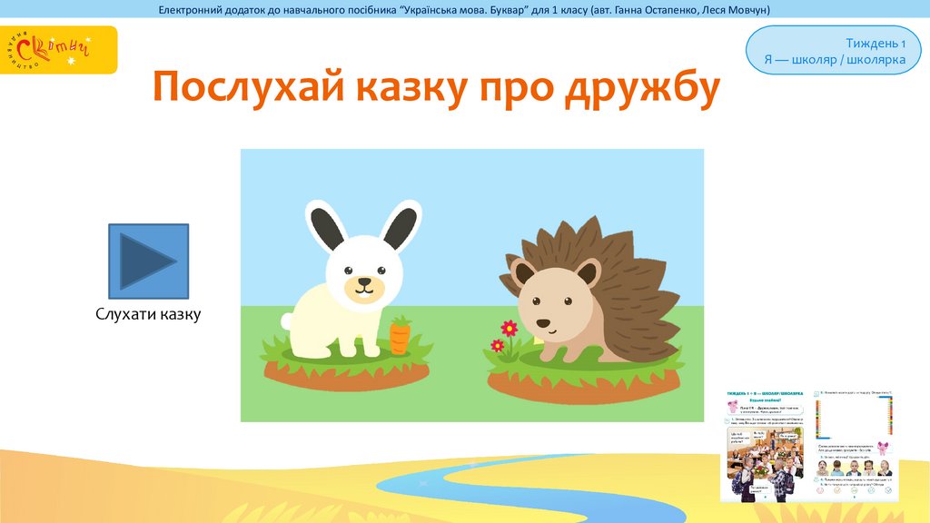 Електронний додаток до навчального посібника “Українська мова. Буквар” для 1 класу (авт. Ганна Остапенко, Леся Мовчун)Послухай казку про дружбу