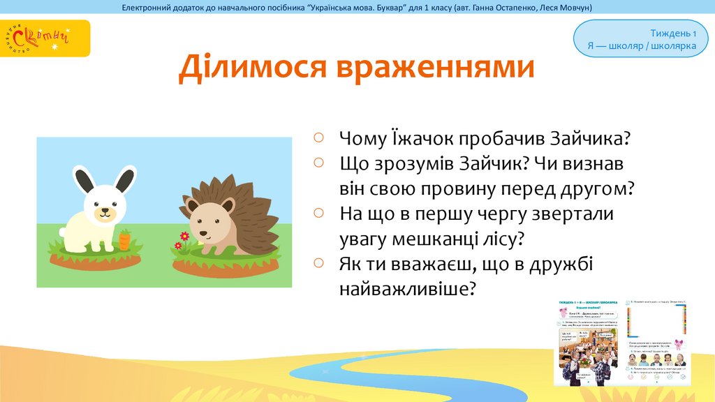 Електронний додаток до навчального посібника “Українська мова. Буквар” для 1 класу (авт. Ганна Остапенко, Леся Мовчун)Ділимося враженнями