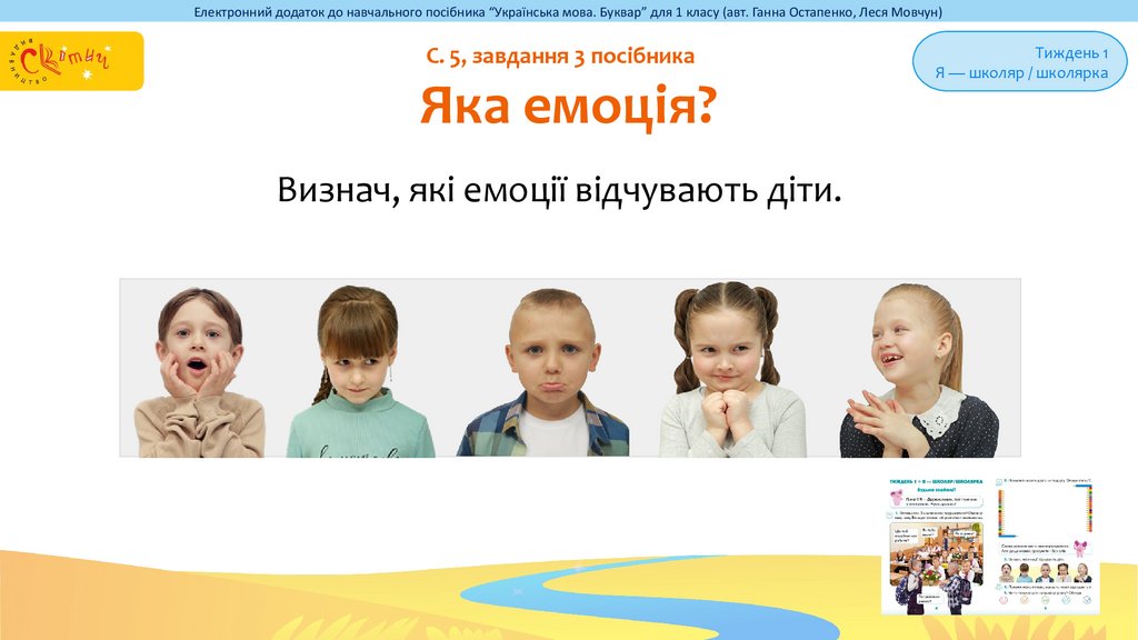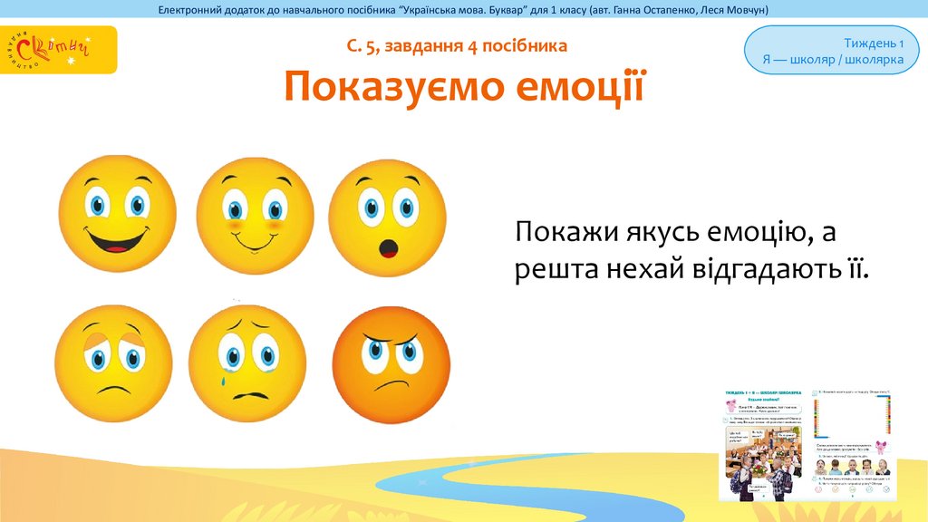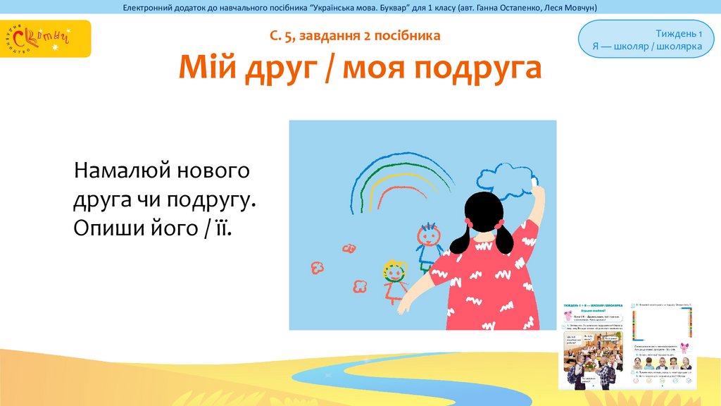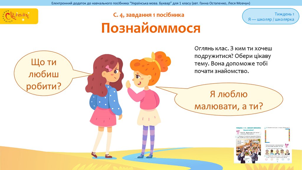 Електронний додаток до навчального посібника “Українська мова. Буквар” для 1 класу (авт. Ганна Остапенко, Леся Мовчун)С. 4, завдання 1 посібника