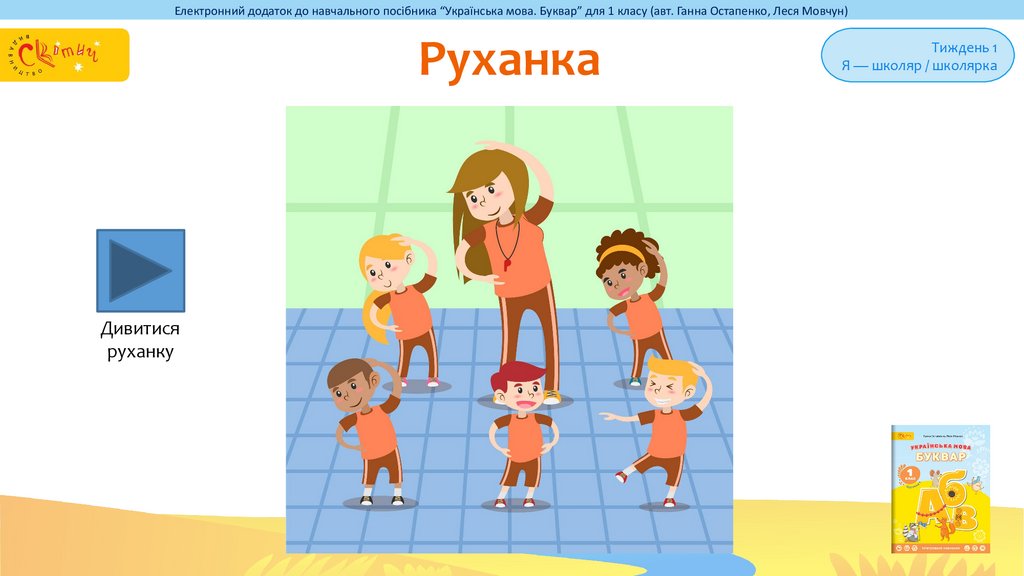Електронний додаток до навчального посібника “Українська мова. Буквар” для 1 класу (авт. Ганна Остапенко, Леся Мовчун)Руханка