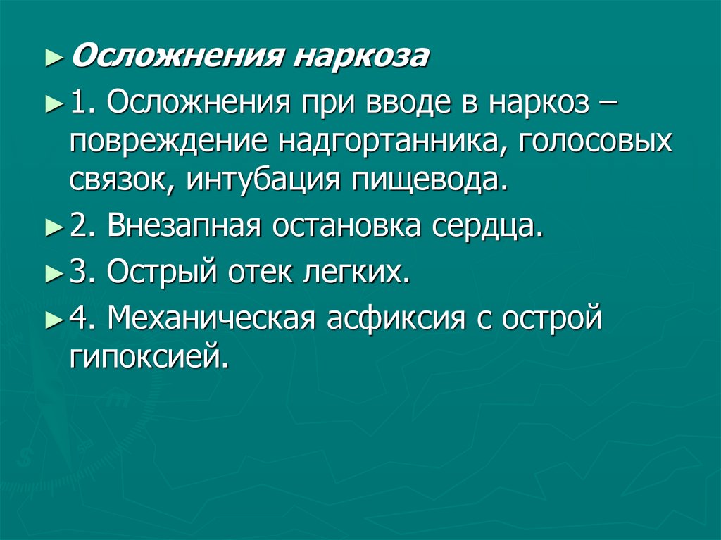 ► Осложнения наркоза► 1. Осложнения при вводе в наркоз –