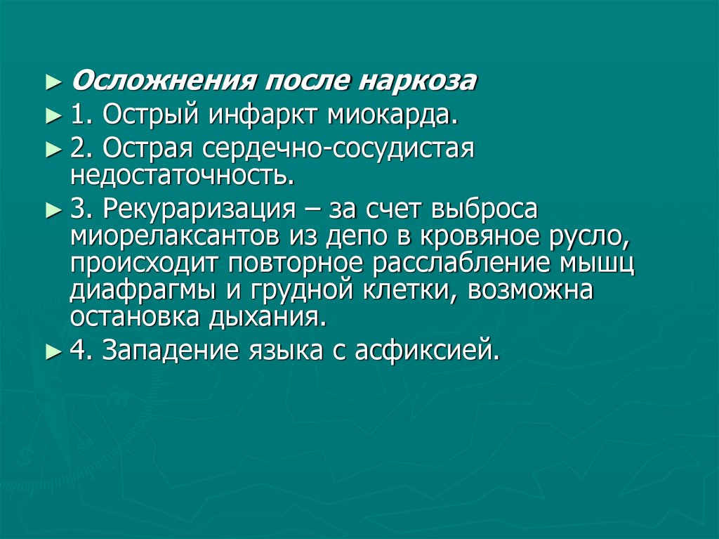 ► Осложнения после наркоза► 1. Острый инфаркт миокарда.