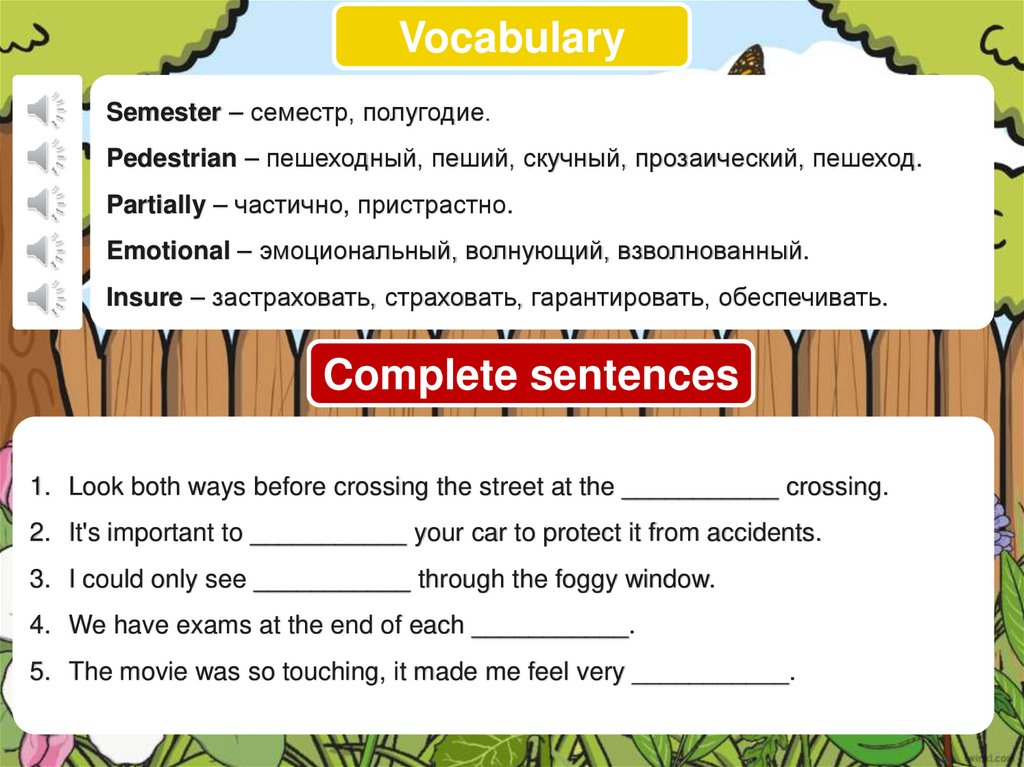 Vocabulary. Complete sentences