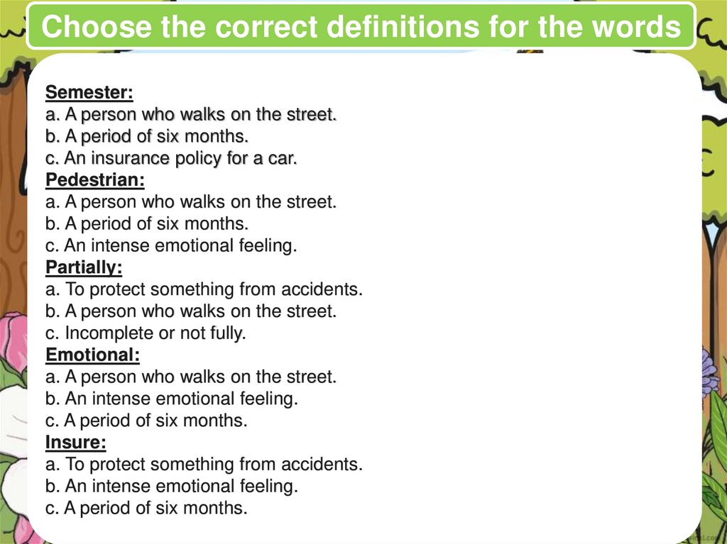 Choose the correct definitions for the wordsSemester: