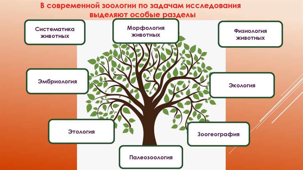 В современной зоологии по задачам исследованиявыделяют особые разделы