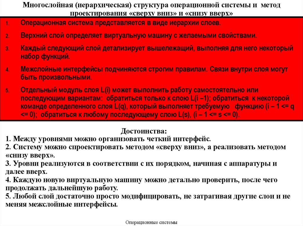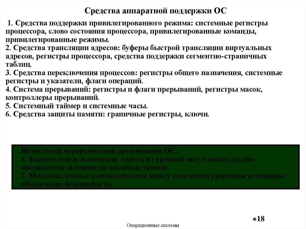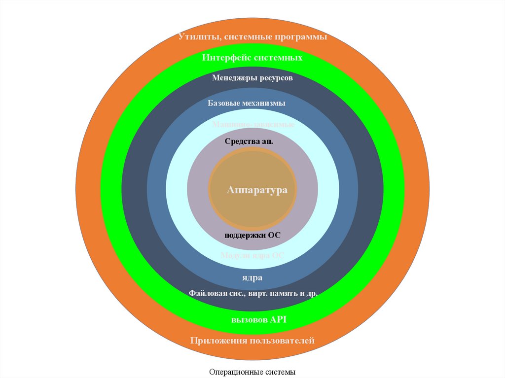 Расположение ОС в иерархической структурепрограммного и аппаратного обеспечения