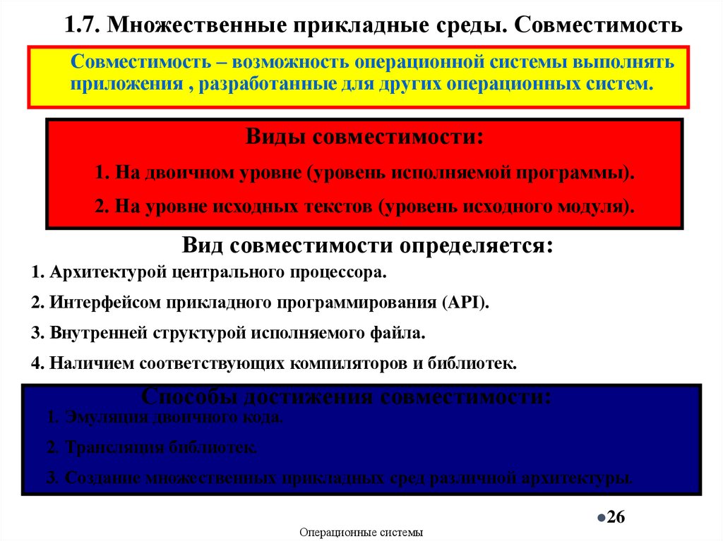 1.7. Множественные прикладные среды. СовместимостьСовместимость – возможность операционной системы выполнять
