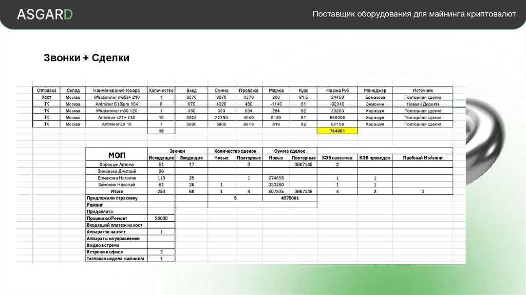 Поставщик оборудования для майнинга криптовалютЗвонки + Сделки