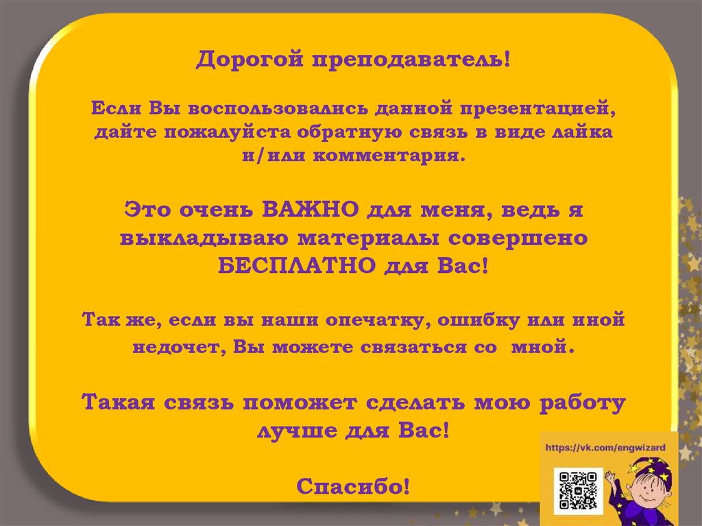 Дорогой преподаватель!Если Вы воспользовались данной презентацией,