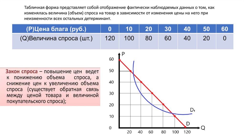 Табличная форма представляет собой отображение фактически наблюдаемых данных о том, какизменялась величина (объем) спроса на товар в зависимости от изменения цены на него при