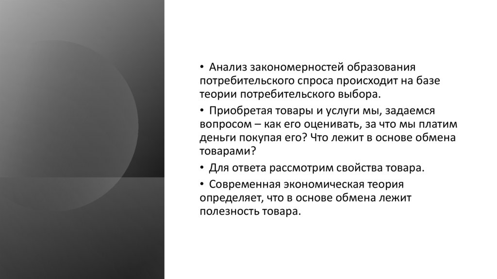 • Анализ закономерностей образованияпотребительского спроса происходит на базе