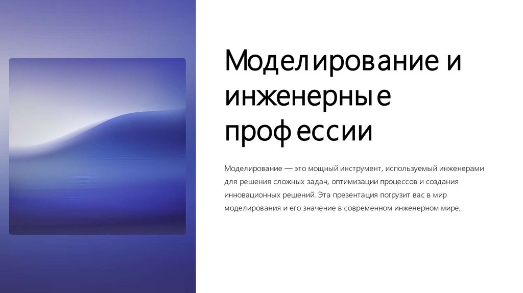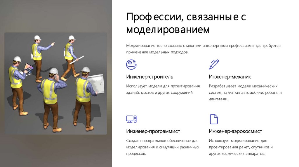 Моделирование тесно связано с многими инженерными проф ессиями, где требуется