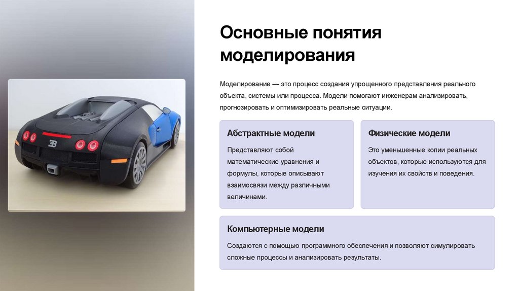 объекта, системы или процесса. Модели помогают инженерам анализировать,