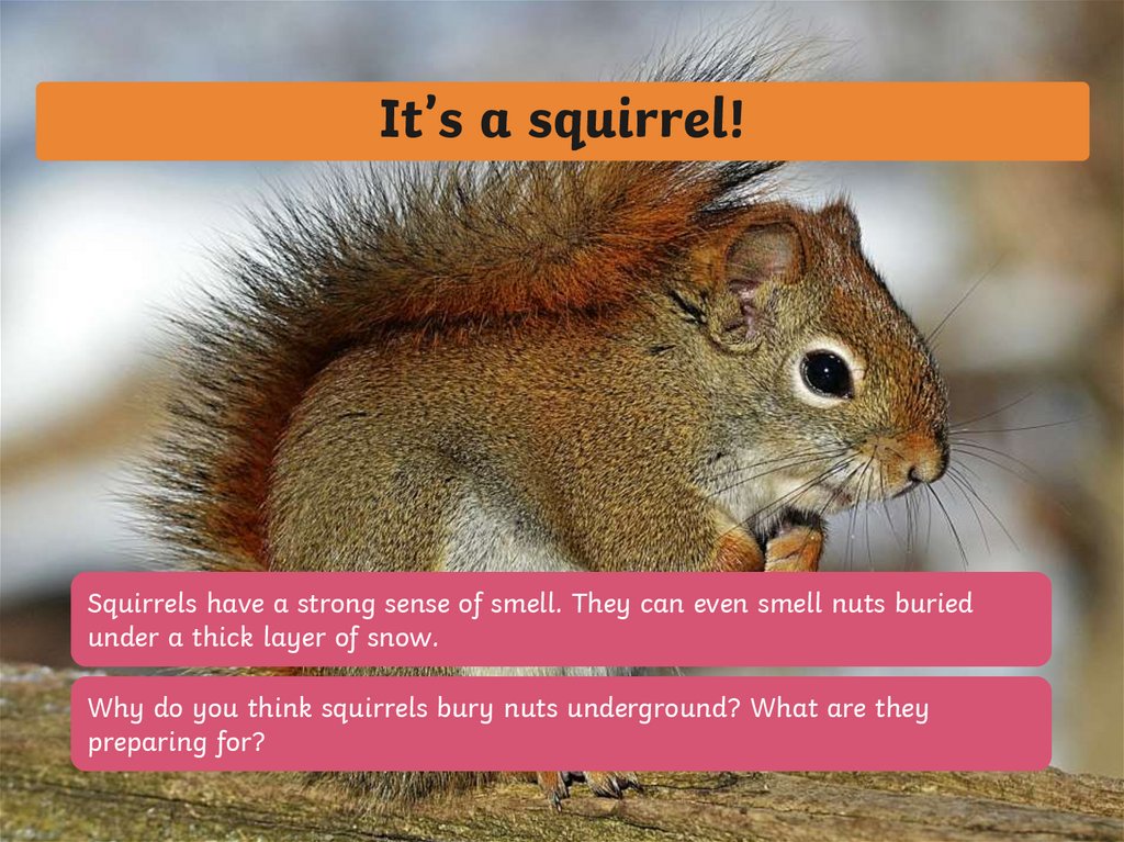 It’s a squirrel!Squirrels have a strong sense of smell. They can even smell nuts buried
