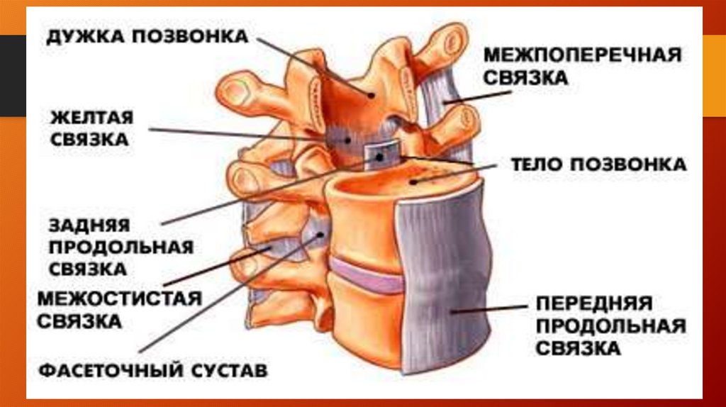 позвонка до крестца внутри позвоночного канала по задней поверхности