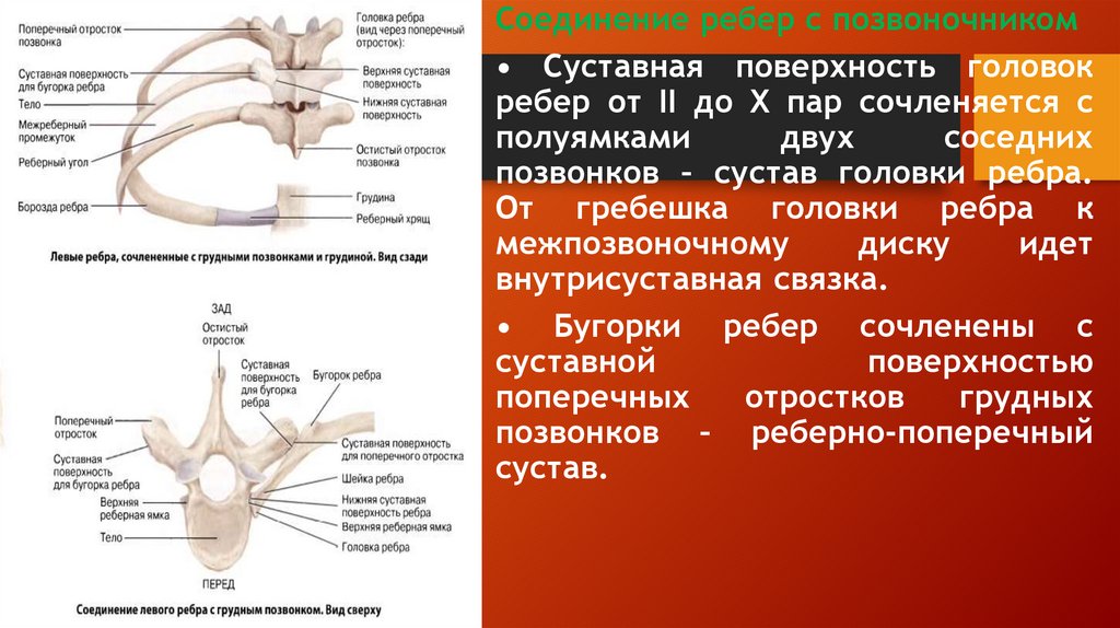 Соединение ребер с позвоночником• Суставная поверхность головок