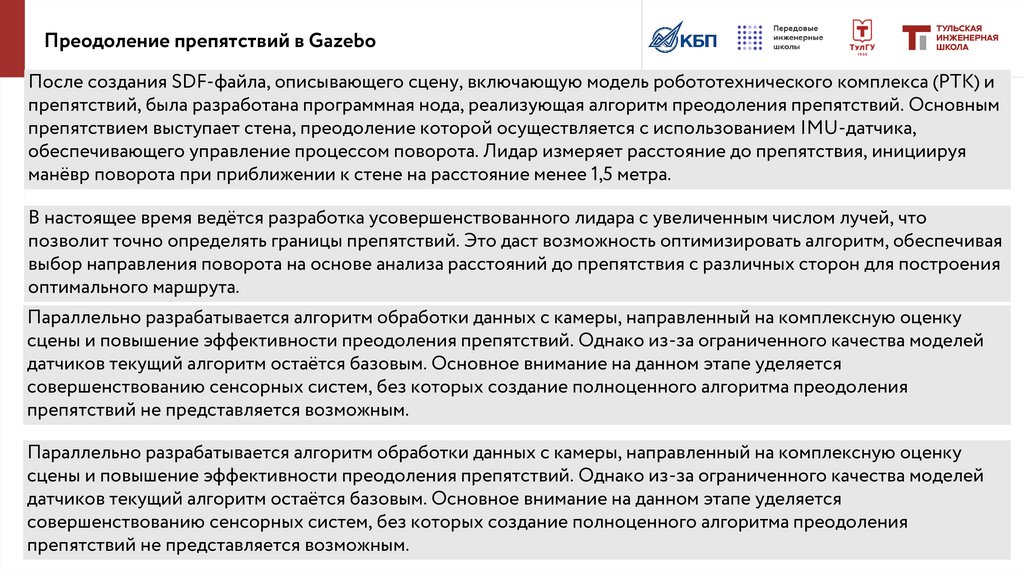 совершенствованию сенсорных систем, без которых создание полноценного алгоритма преодоления