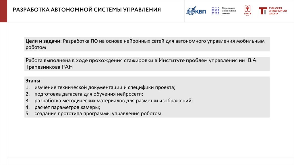 5. Разработка алгоритма для автономного управления РТК