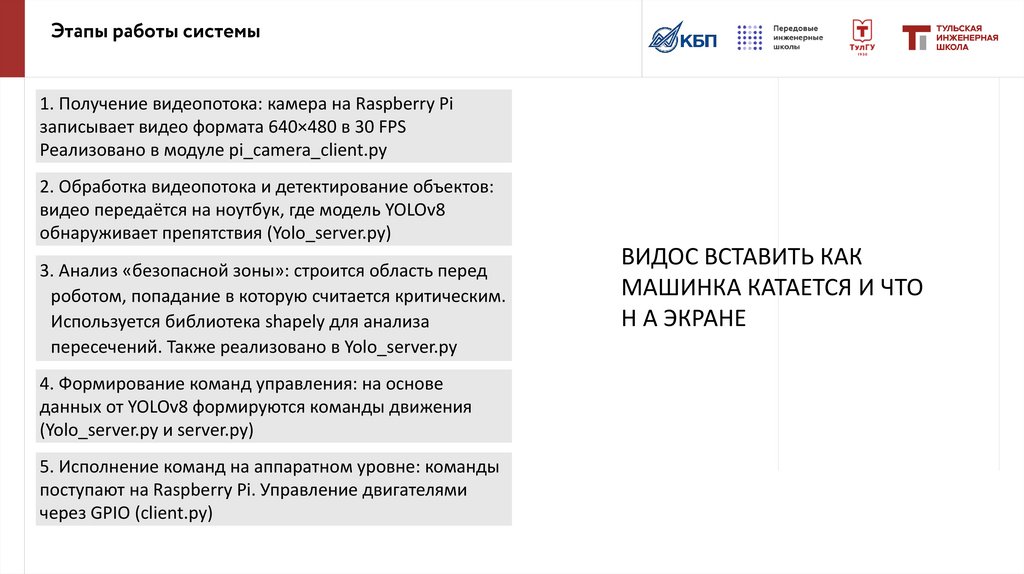 Этапы работы системы1. Получение видеопотока: камера на Raspberry Pi