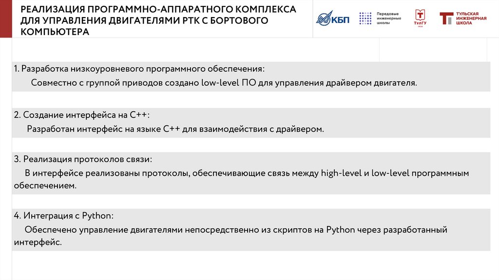 Совместно с группой приводов создано low-level ПО для управления драйвером двигателя.