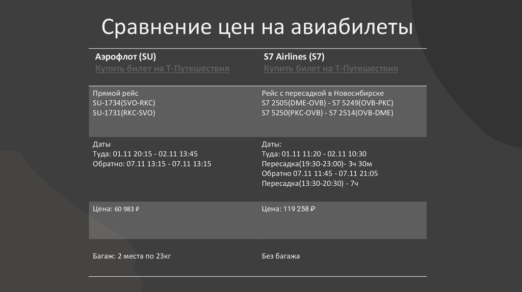Сравнение цен на авиабилетыАэрофлот (SU)