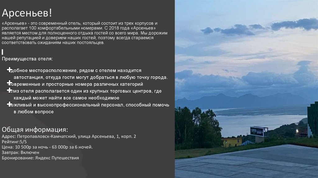 Арсеньев!«Арсеньев» - это современный отель, который состоит из трех корпусов и