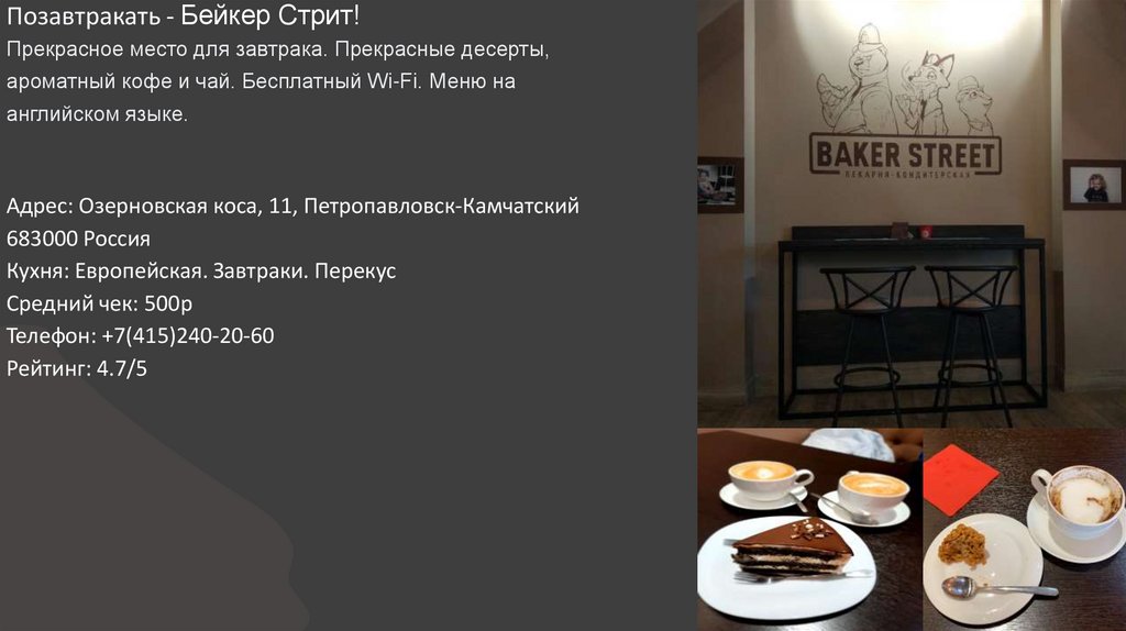 Позавтракать - Бейкер Стрит!Прекрасное место для завтрака. Прекрасные десерты,