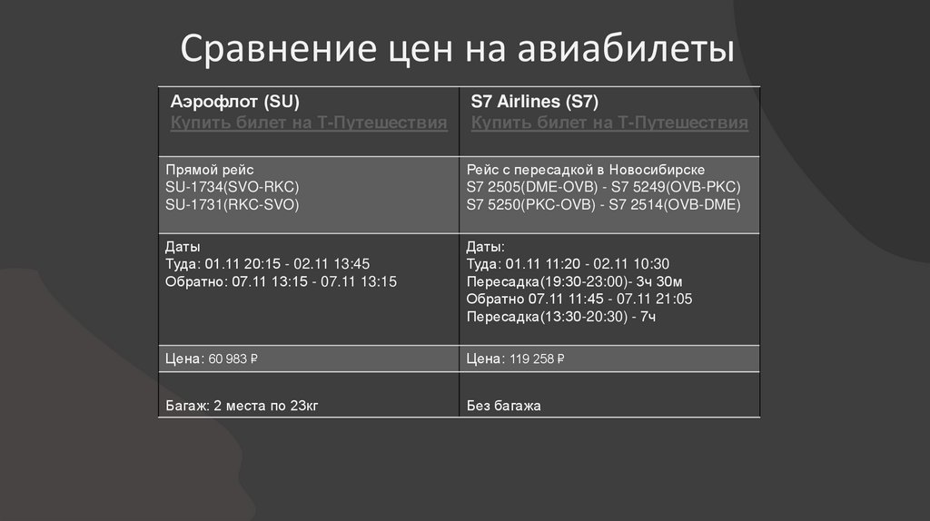 Сравнение цен на авиабилетыАэрофлот (SU)