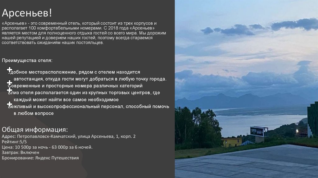 Арсеньев!«Арсеньев» - это современный отель, который состоит из трех корпусов и