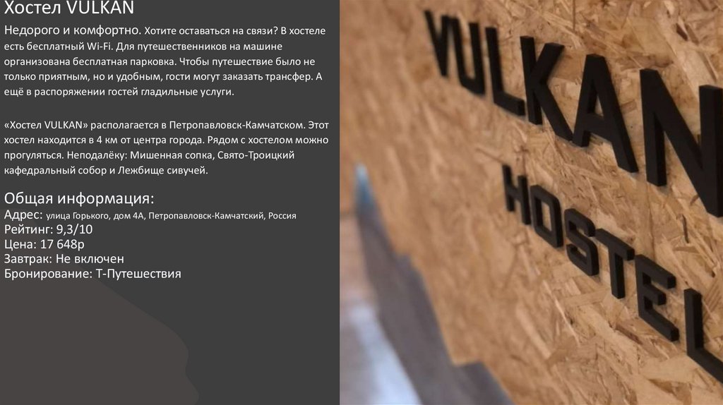 «Хостел VULKAN» располагается в Петропавловск-Камчатском. Этот
