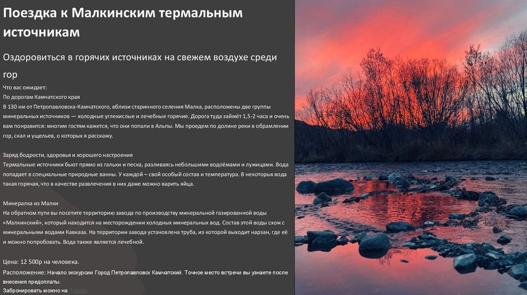 Расположение: Начало экскурсии Город Петропавловск Камчатский. Точное место встречи вы узнаете после
