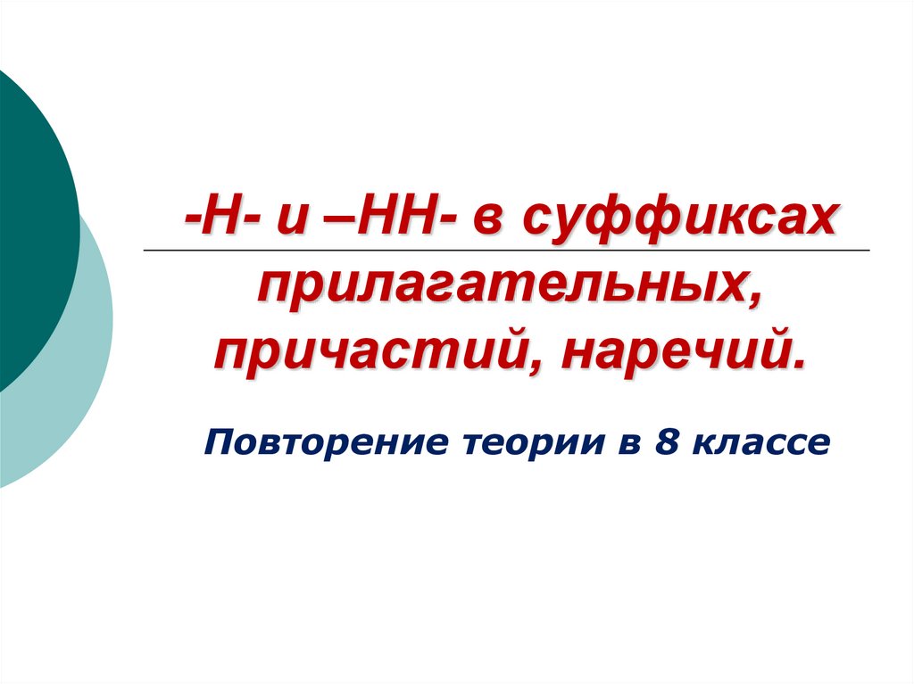 -Н- и -нн- в суффиксах прилагательных, причастий, наречий. Повторение теории в 8 классе