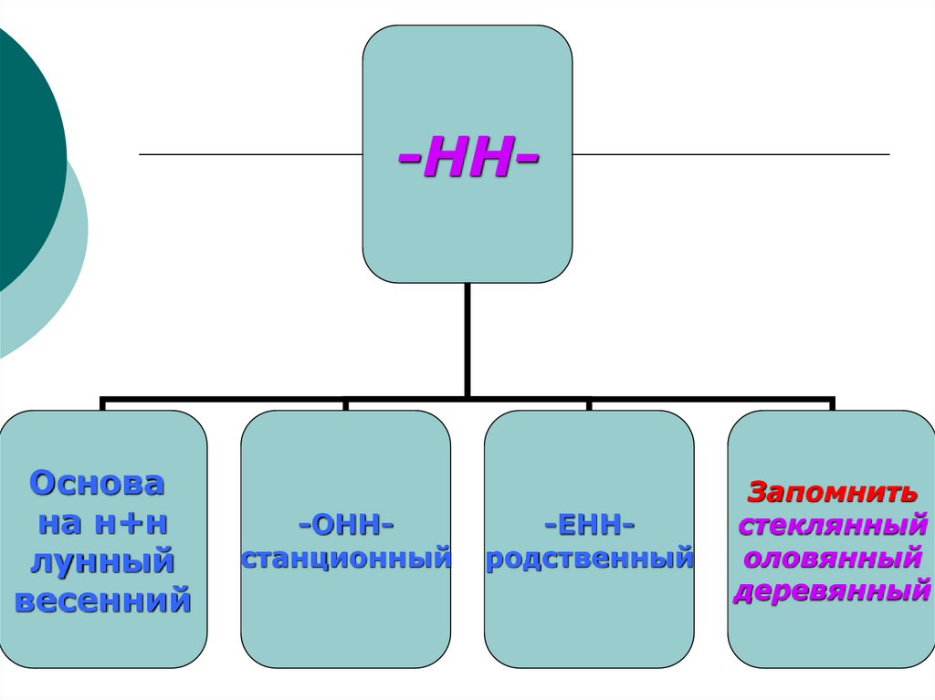 1. -Н- и –НН- в суффиксах прилагательных, причастий, наречий.