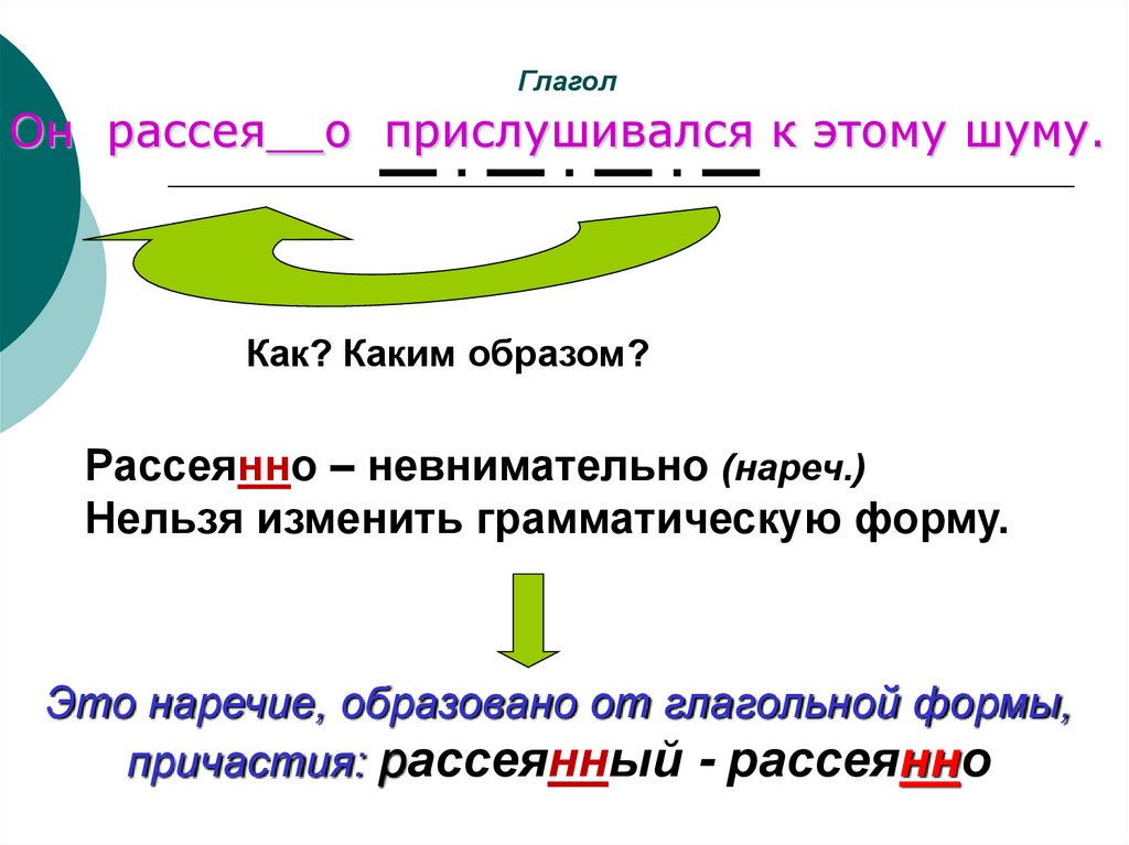 ГлаголОн рассея__о прислушивался к этому шуму.
