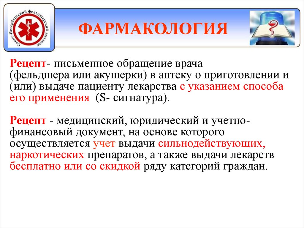 ФАРМАКОЛОГИЯРецепт- письменное обращение врача