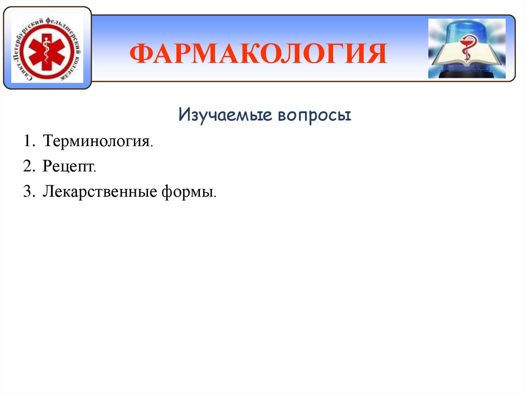 ФАРМАКОЛОГИЯИзучаемые вопросы