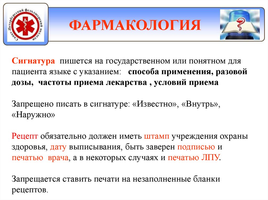 препаратов и необходимые моменты в их оформлении (какие печати и