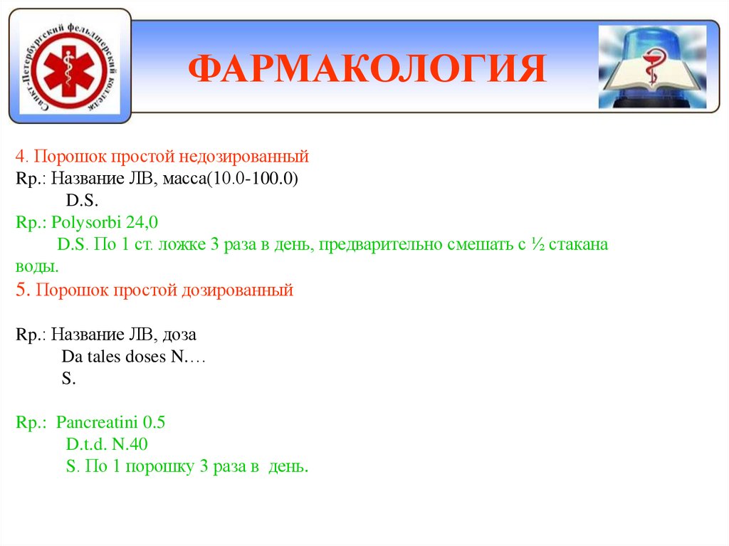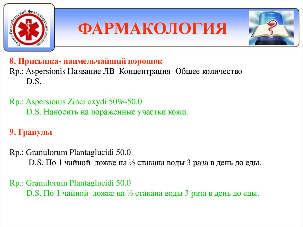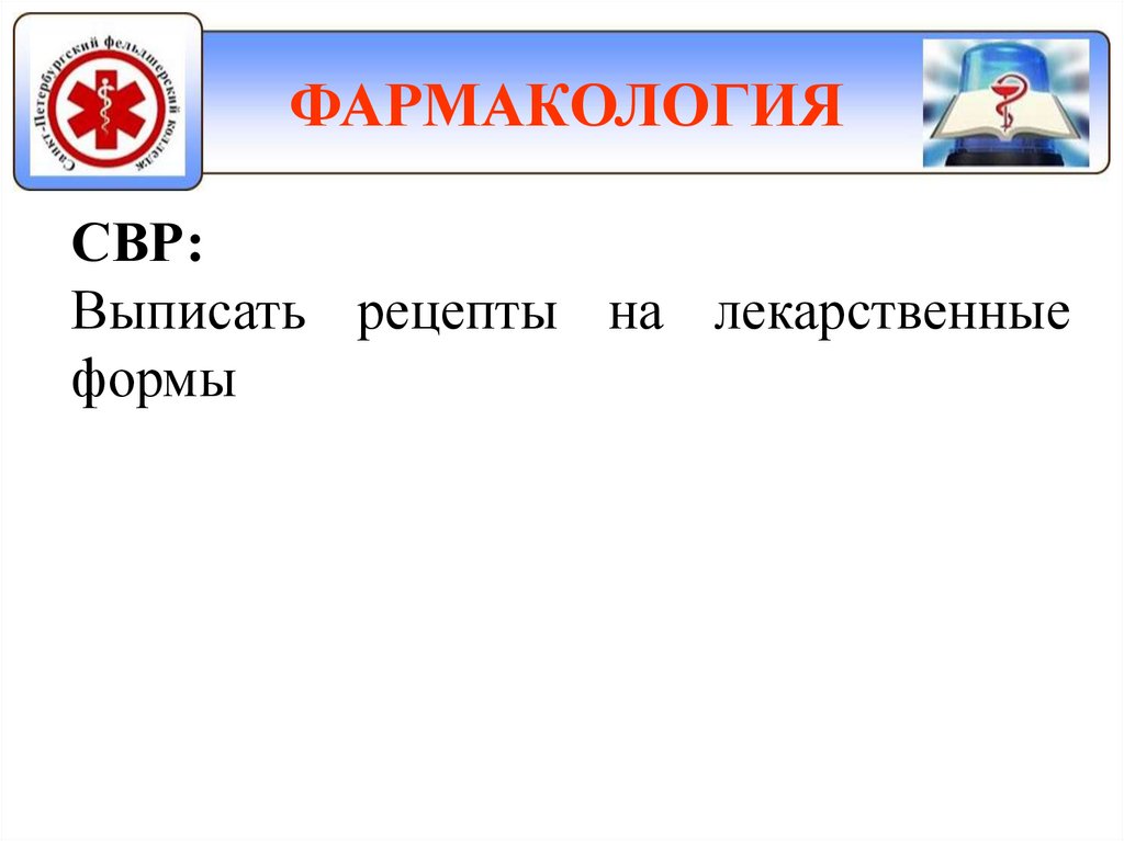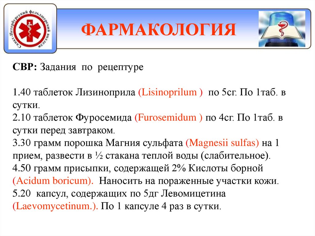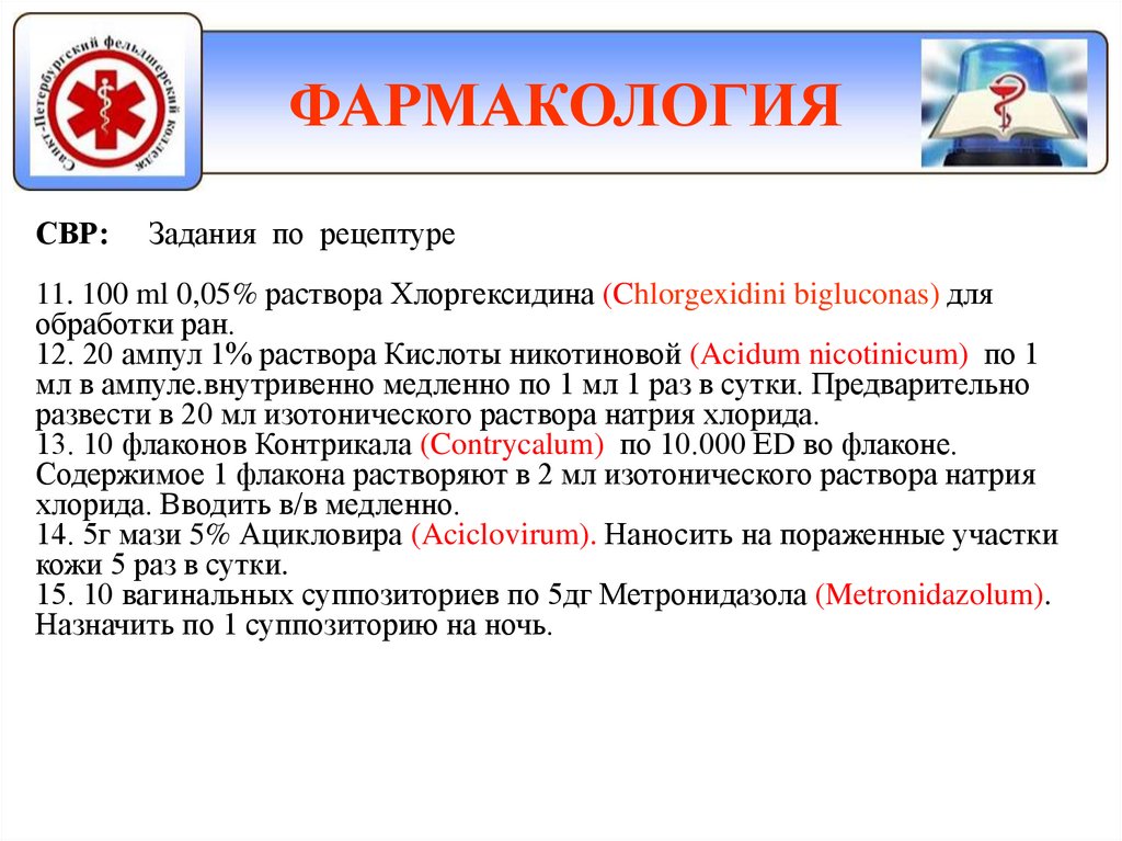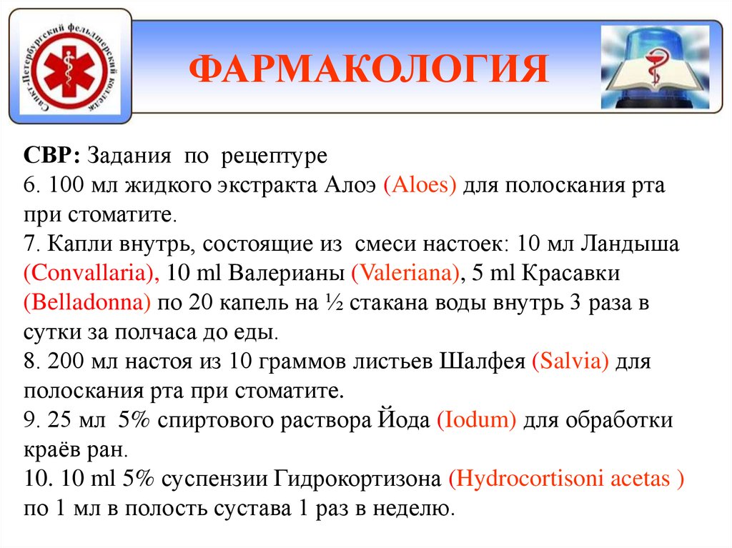 ФАРМАКОЛОГИЯСВР: Задания по рецептуре
