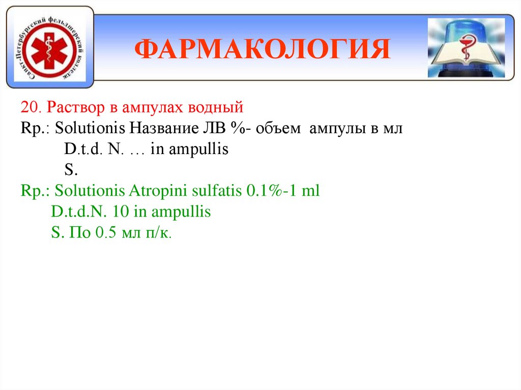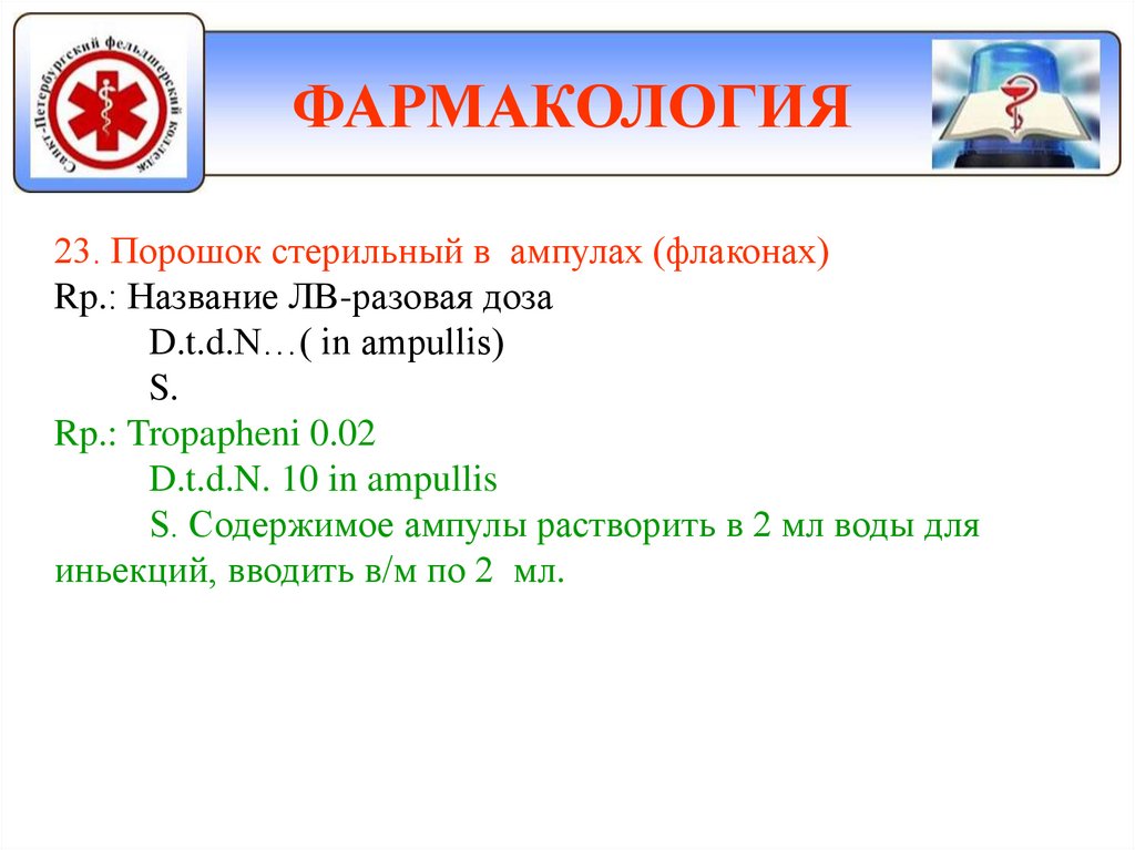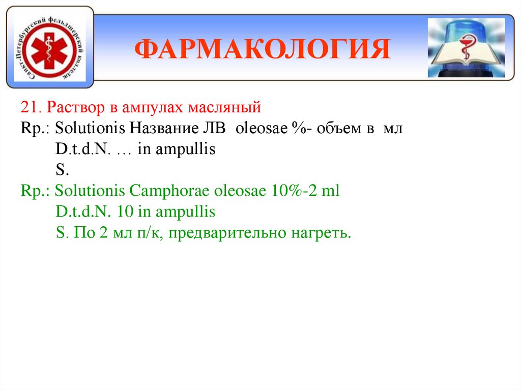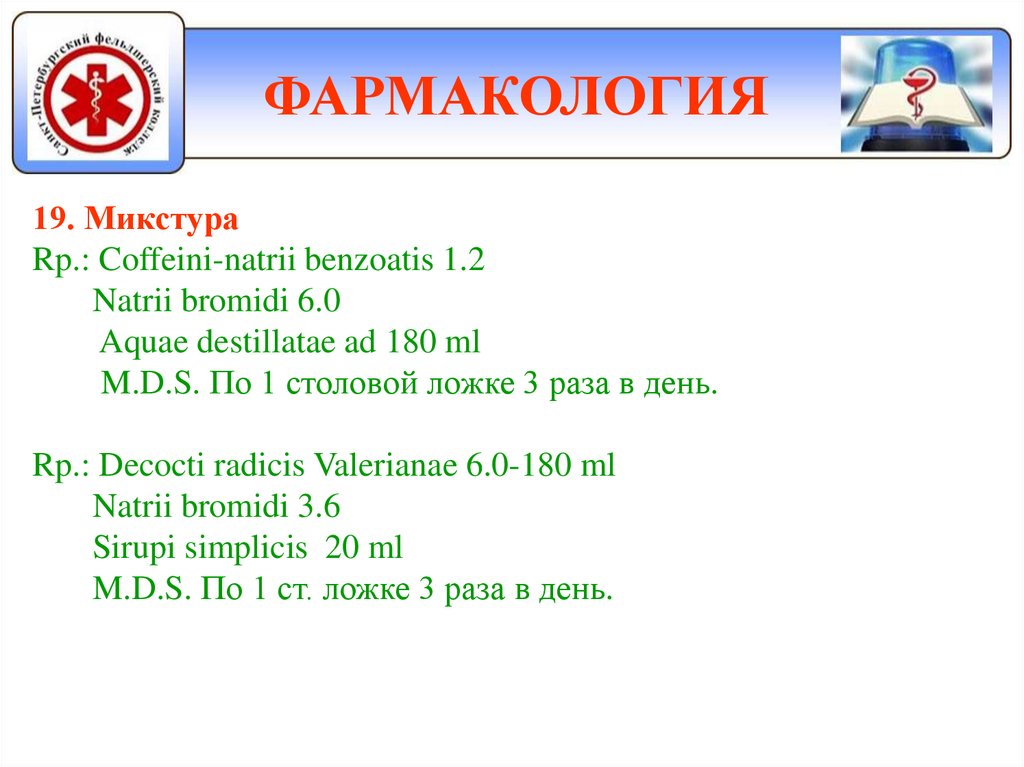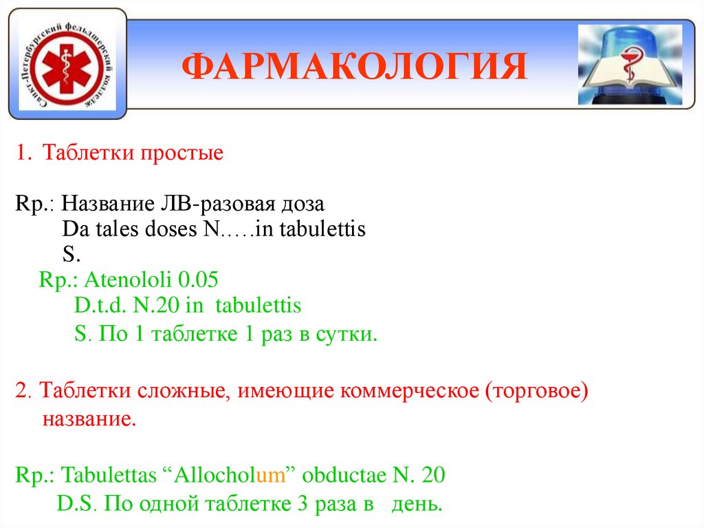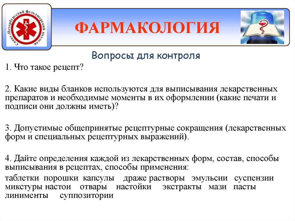 ФАРМАКОЛОГИЯСВР: Задания по рецептуре