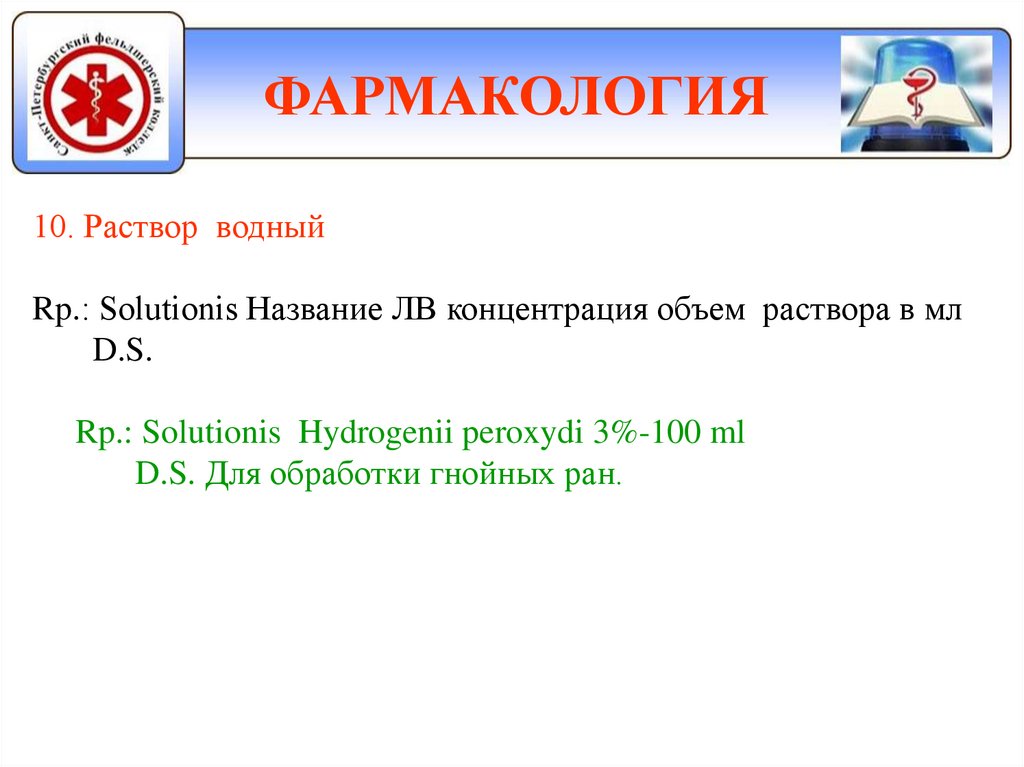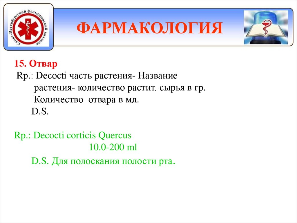 (фельдшера или акушерки) в аптеку о приготовлении и