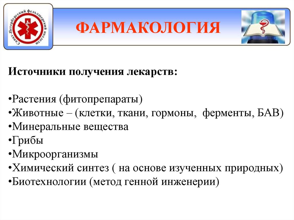 ФАРМАКОЛОГИЯИсточники получения лекарств: