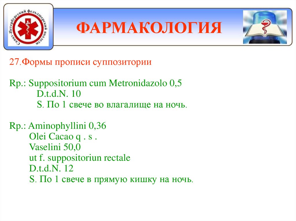 ФАРМАКОЛОГИЯ27.Формы прописи суппозитории