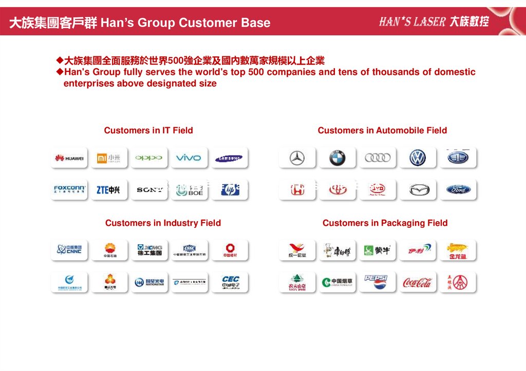 大族集團客戶群 Han’s Group Customer Base大族集團客戶群 Han’s Group Customer Base