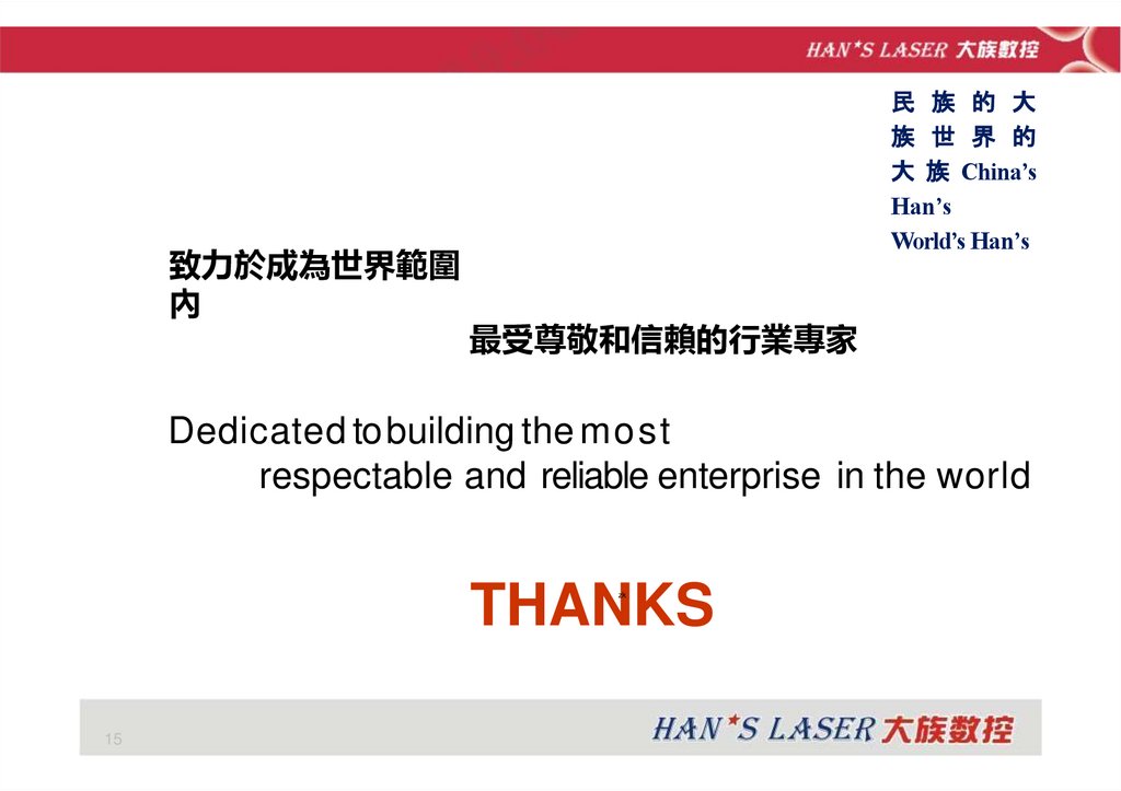 深圳市大族數控科技股份有限公司 簡稱 大族數控Shenzhen Han’s CNC Technology Co. Limited(HAN’S CNC)
