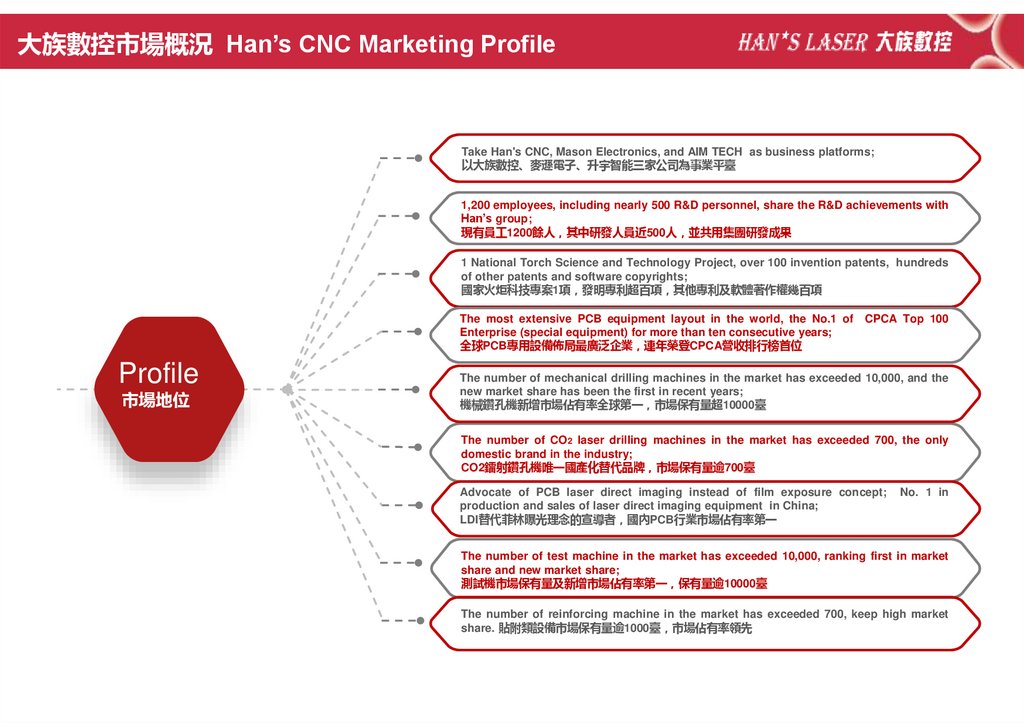 大族數控市場概況 Han’s CNC Marketing ProfileTake Han's CNC, Mason Electronics, and AIM TECH as business platforms;